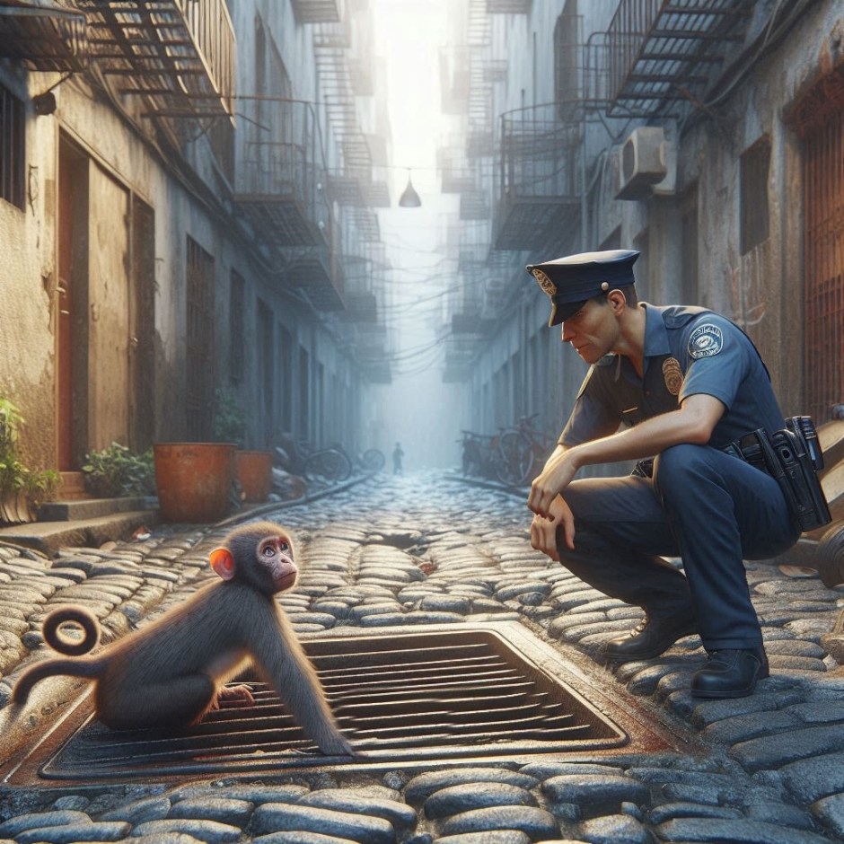 One day, a police officer received a call about a mischievous monkey wreaking havoc throughout the town. The creature turned over trash cans, stole bags of groceries, and screeched at all hours of the night. No matter how hard the officer tried, the monkey always outsmarted him.